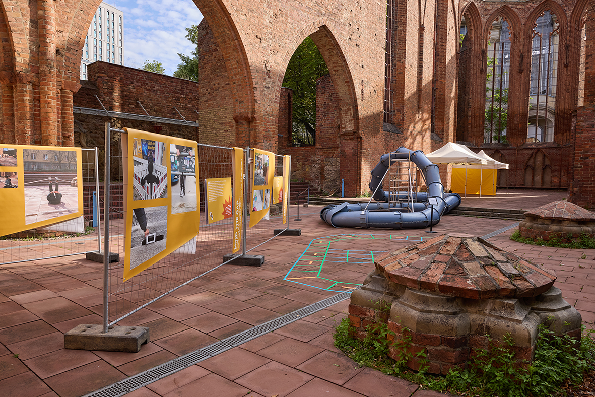 Die Präsentation der Ergebnisse findet in diesem Jahr am 16. Juli, 9-18 Uhr, mit einem vielfältigen Begleitprogramm in der Klosterruine in Berlin Mitte stattfinden. Neben der Dokumentation und ausgewählten Ergebnissen der Projekte wird es vier parallele Workshop-Angebote für Kinder und Jugendliche geben. Die Ausstellung wird so zum Erlebnisraum inmitten der Mauern der Ruine, die ein wichtiger Ort für zeitgenössische Kunst in Berlin ist.