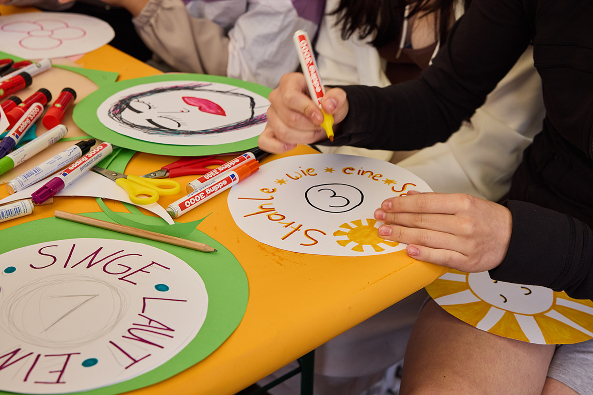 Im Rahmen der Abschlusspräsentation bieten wir für Schulklassen und andere Gruppen kostenlose Besuche inklusive Workshops an. Die geführten Besuche sind auf 1,5 Stunden angelegt und beinhalten den Ausstellungsbesuch und 45 Minuten Workshop-Aktivitäten.